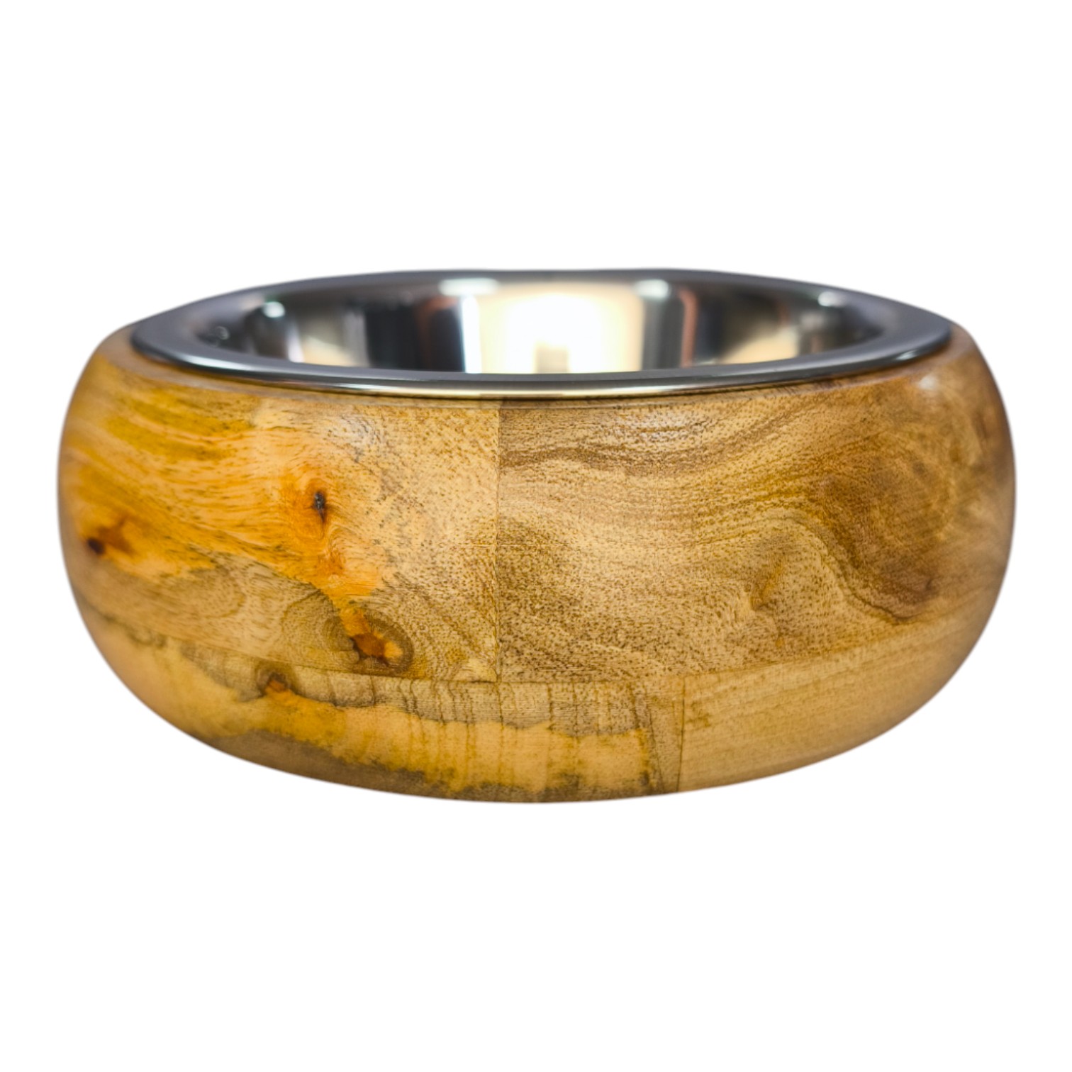 Внутренняя чаша из нержавеющей стали гигиеничная, устойчива к запахам и легко очищается. Плотная посадка миски в деревянное основание обеспечивает устойчивость и предотвращает скольжение во время использования.